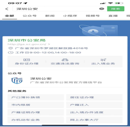 深圳迁移方法:步骤1搜索深圳公安,选择户籍迁入。