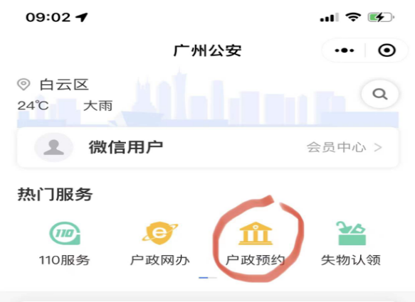 广州迁入:步骤1搜索广州微警务小程序