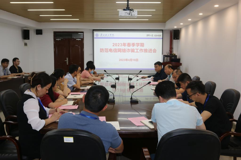 4月18日下午,学校召开2023年春季学期防范电信网络诈骗工作推进会,学校党委副书记、副校长肖海出席会议,宣传部、学生工作部、保卫处等职能部门负责同志,各二级学院党总支书记、学工组长,保卫处及宣传部专干参加会议。会议由学生工作部部长张志红主持。