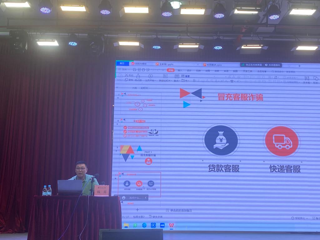 宣讲会上,钱亮所长通过举案说法,用派出所常遇有关大学生警情出发,用生动形象的语言告诫同学们要严守法律底线,提高法治观念,增强个人防范意识。