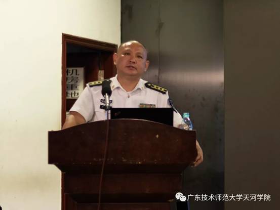 5月31日下午,学校2019年国防教育暨征兵动员大会在学术报告厅召开。海军陆战队训练基地李永波上校、白云区武装部负责人应邀出席会议,学校副校长张武华和宣传部、学工部、教务处、招就处、财务处、二级学院党总支负责人、全体辅导员、学生代表350余人参加会议。由国防教育办公室主任杨志亮主持。