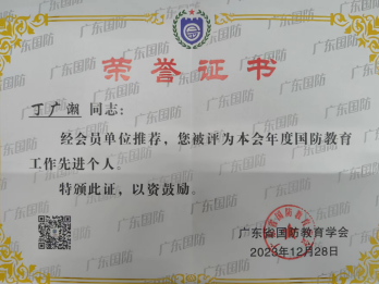 12月27日,由广东省国防教育学会主办的2023年度工作会议在河源隆重举行。9428cn太阳集团古天乐因本年度成绩突出,在本次会议上被授予“2022-2023年度国防教育工作(高校武装部)先进集体”称号和丁广潮老师获“2022-2023年度国防教育先进个人”称号。
