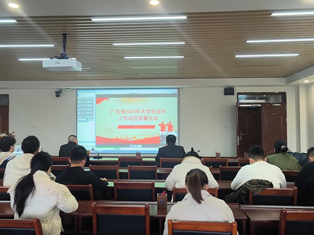 2月27日下午,广东省教育厅组织召开2024年大学生征兵工作动员部署会议,广东省教育厅副厅长程大欣,省征兵办副主任、省军区动员局副局长宋纯武等相关领导在主会场出席会议。我校在白云校区行政楼815设分会场,学校副校长张志红,武装部部长陈朝阳,以及各二级学院党总支书记、负责征兵工作辅导员参加了本次会议。