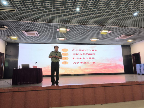 广州市国防教育讲师团专家曹汉林教授以《青春军旅梦,报国正当时》为题,从青年的责任与梦想、应征入伍的流程、大学生入伍优待、大学毕业生入伍四个专题进行深度的宣讲。他鼓励:当代大学生应投身于军营之中,践行“请党放心,强国有我”的青春誓言,展现广大青年对国家与民族的一种责任和担当。曹汉林教授声情并茂、掷地有声的讲授让在场师生深受启发。