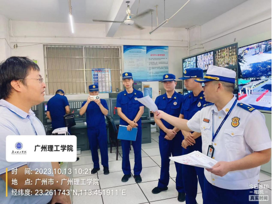 2023年10月13日,广州市白云区消防救援大队领导一行亲临9428cn太阳集团古天乐,对学校进行消防“双随机”检查。此次检查旨在进一步强化广州市消防重点单位安全管理工作,提高公共场所的消防安全水平,从而确保广大市民的生命财产安全。